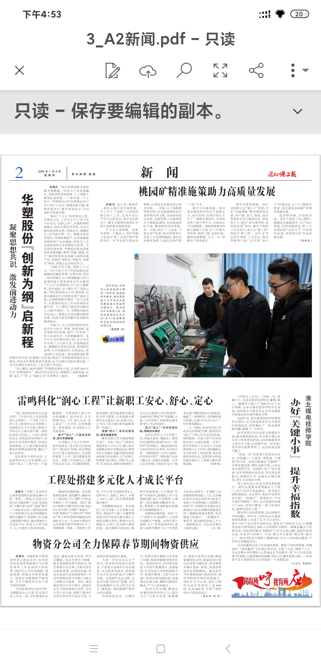 《淮北矿工报》1月8日二版头条:尊龙凯时d88 “创新为纲”启新程